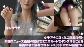 3DCG 【エロ漫画】女子アナになった二階堂沙耶・早朝のニュース番組の冒頭でミニスカートでダンスすることを業務命令で強要される:Vol.008『ただの話題作りとのことで電源OFF(のはず)のカメラが4台、ローアングルから彼女のスカート内を覗き込むように設置されている:PV08_豹柄フルバックパンティで扇風機風チラ』 Libido-Labo DMM FANZA 同人